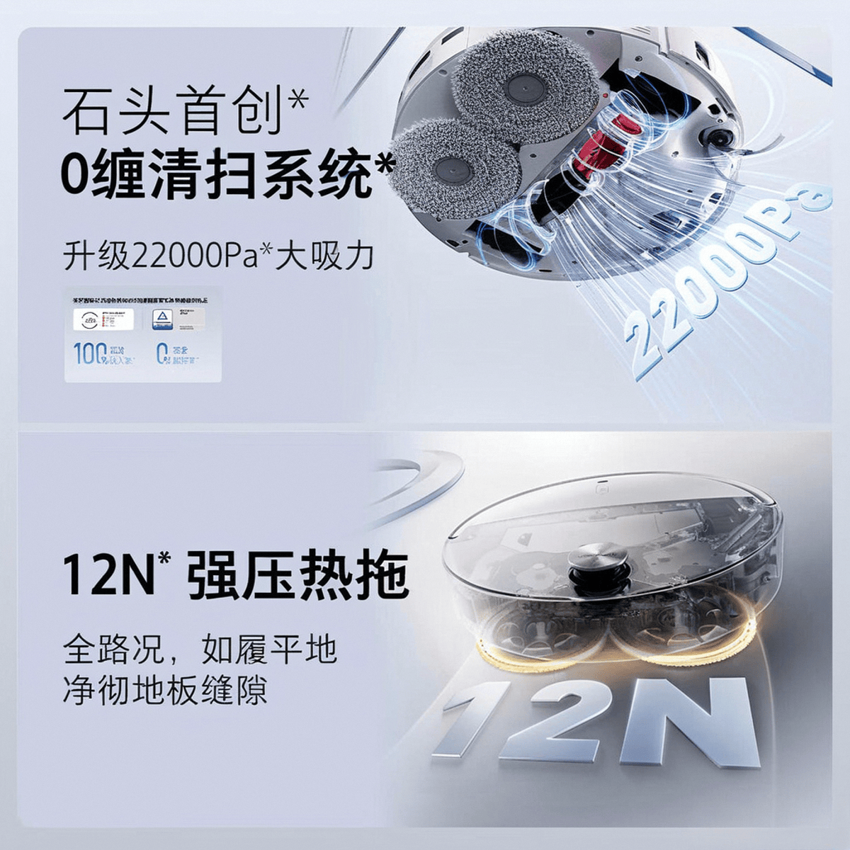 在现代家居生活中★ღ,拥有一款22000Pa强劲吸力的扫地机器人能够大大提升日常清洁效率★ღ。无论是墙角的灰尘还是地板缝隙里的细小垃圾★ღ,均能轻松解决★ღ,确保家庭环境洁净如新★ღ。其超薄机身设计★ღ,厚度仅为7.98cmj9九游会老哥俱乐部★ღ,让清洁变得更为灵活★ღ,可以自在穿梭于床下★ღ、沙发底等难以触及的地方★ღ,带给你全方位的清洁体验★ღ。